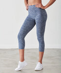 Fitted, high waisted 3/4 length stretch leggings, in solid marl fabric. Seamless knit for comfort. Blind stitching at hems and grown-on waistband. Tombo tear-out label. BSCI certified. Oeko-Tex certified. WRAP certified.